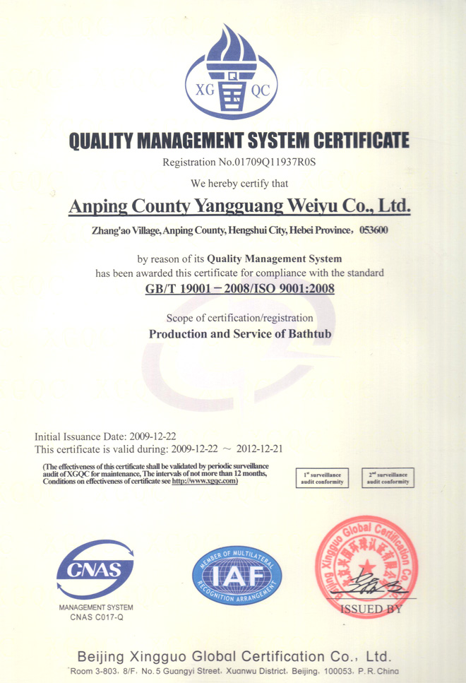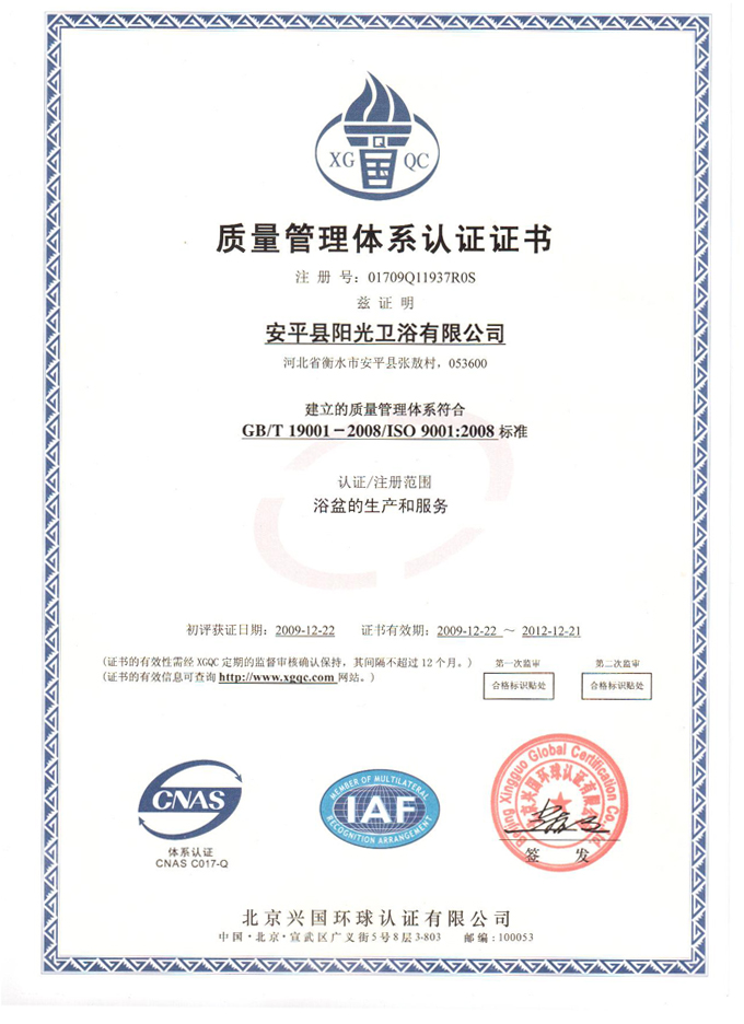 質(zhì)量管理體系認(rèn)證證書
