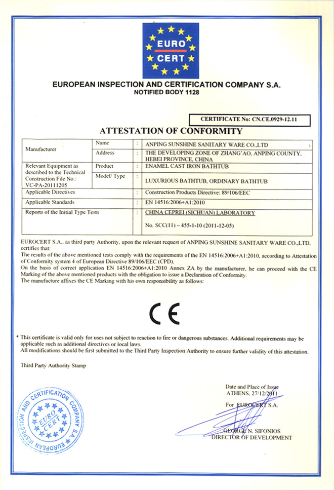 陽光衛(wèi)浴獨(dú)立式鑄鐵浴缸質(zhì)量擔(dān)保書